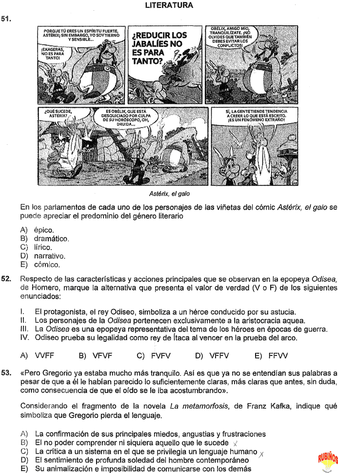 CLAVES DE LITERATURA: 51)B 52)D 53)E 54)A